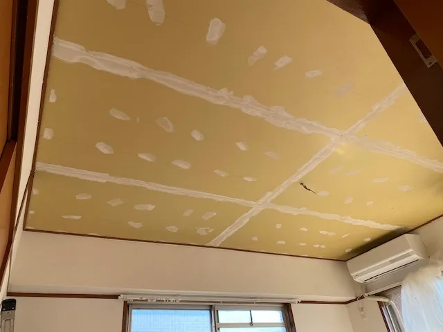 ビス止めした箇所や、石膏ボードのつなぎ目を埋めていく作業です^_^