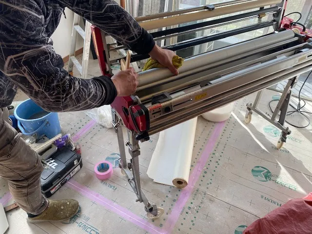 クロスを貼る時にデコボコがでないようにするための作業です^_^