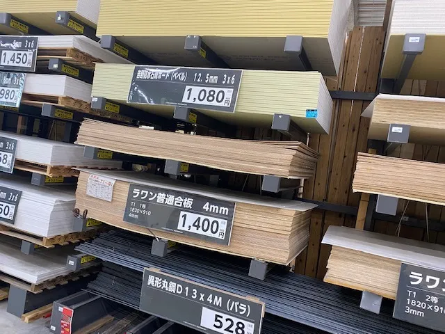 作業日当日朝一番で、船橋市夏見にある「建デポ」さんでラワン普通合板の3ミリを6枚ほど購入^_^