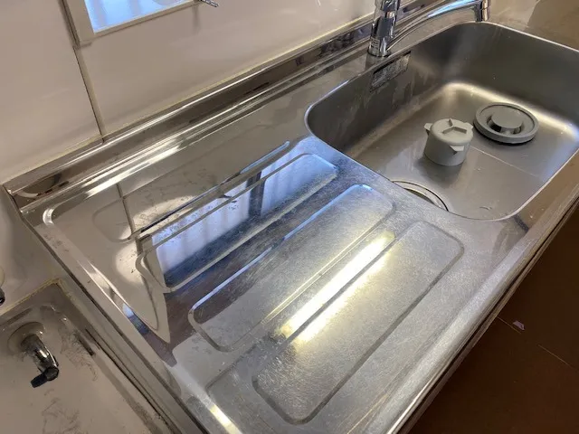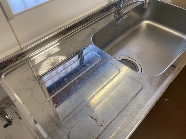 アルカリ性、酸性の洗剤を使用し丁寧に落としていきます^_^ ちなみにこちらの流し台は賃貸物件に多いマイセットです(^O^)/